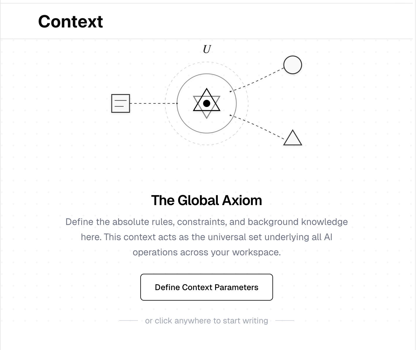 Define your product's constraints, terminology, and background knowledge in a Context document. This acts as a universal set of rules underlying every AI operation across your workspace — so the AI always knows your product's domain.