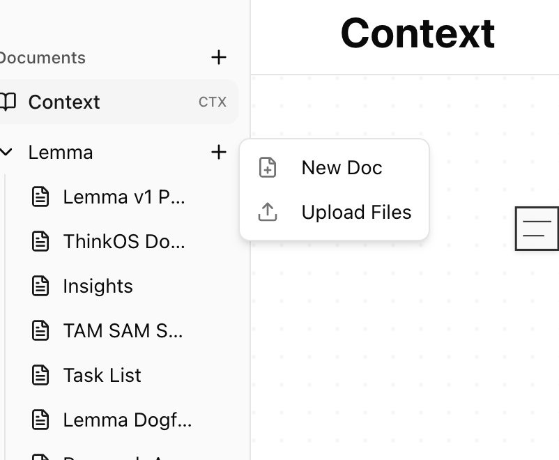 Define your product's constraints, terminology, and background knowledge in a Context document. This acts as a universal set of rules underlying every AI operation across your workspace — so the AI always knows your product's domain.